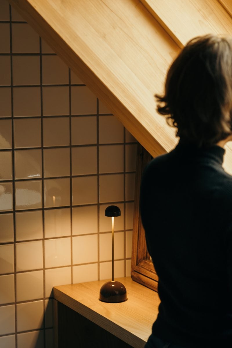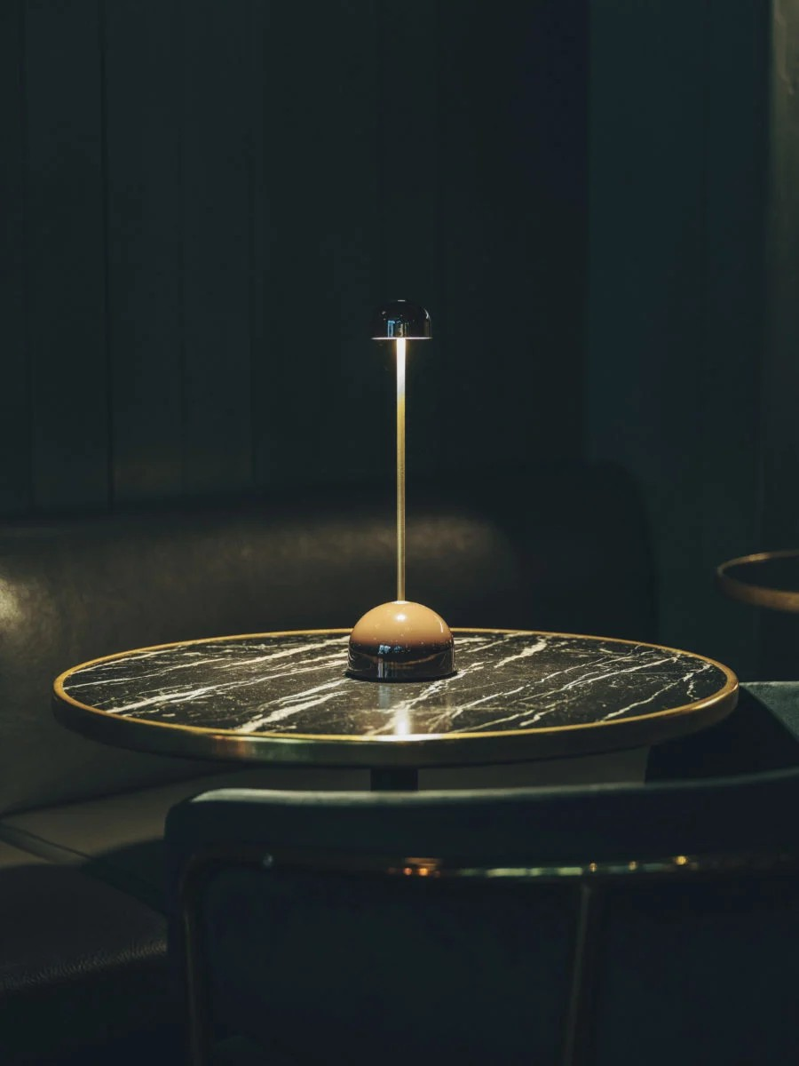 Com uma pequena cúpula opaca, a Sips ilumina a mesa diretamente, mas sem ofuscar ou sobrecarregar o ambiente. A sua base mais larga proporciona estabilidade e inclui um interruptor sensível ao toque com três intensidades de luz. Está disponível em duas tonalidades que se adaptam facilmente a espaços culinários e de lazer: branco quente com haste prateada e castanho escuro com haste em acabamento dourado.