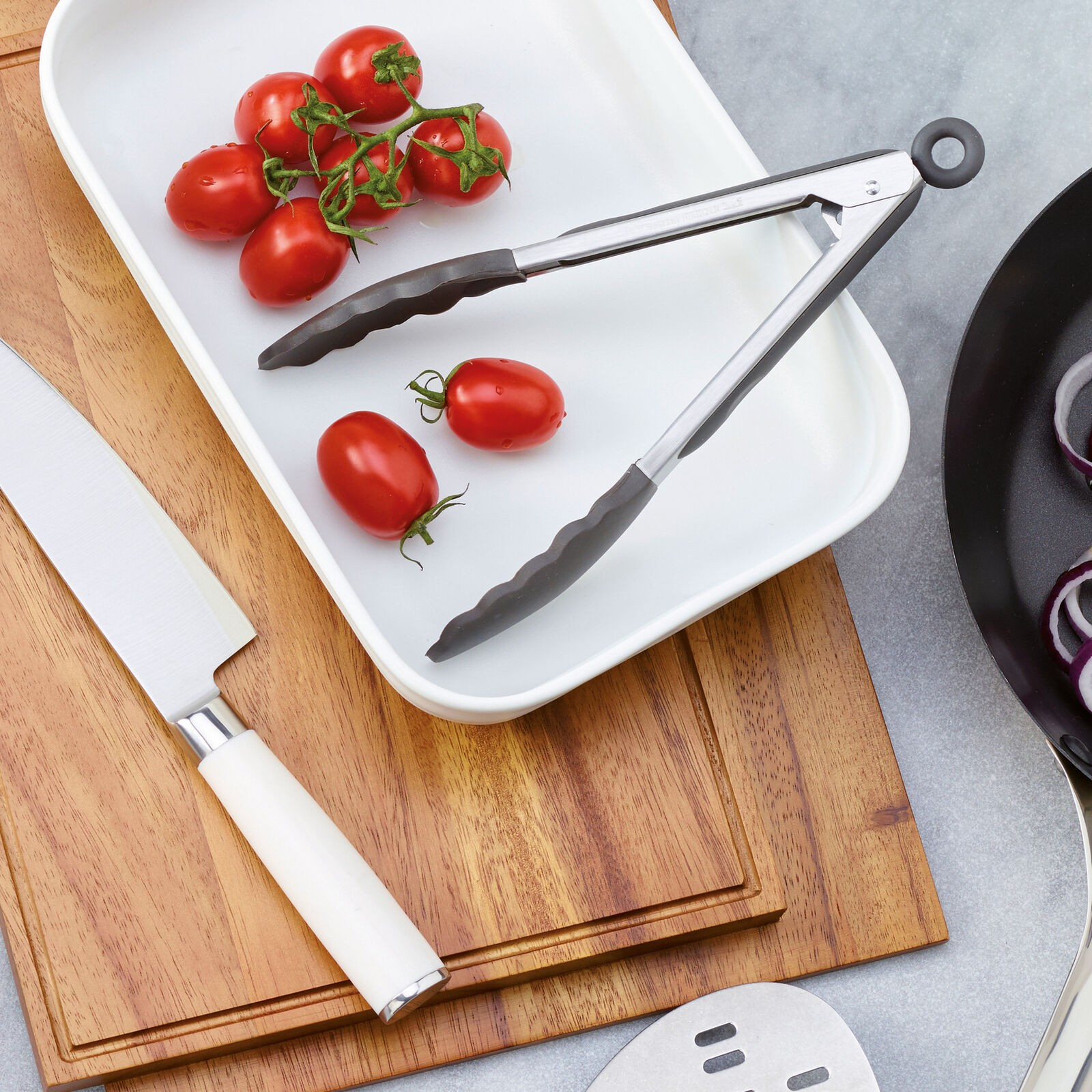 Pinça versátil e prática, ideal para servir facilmente à mesa, diretamente nos pratos.