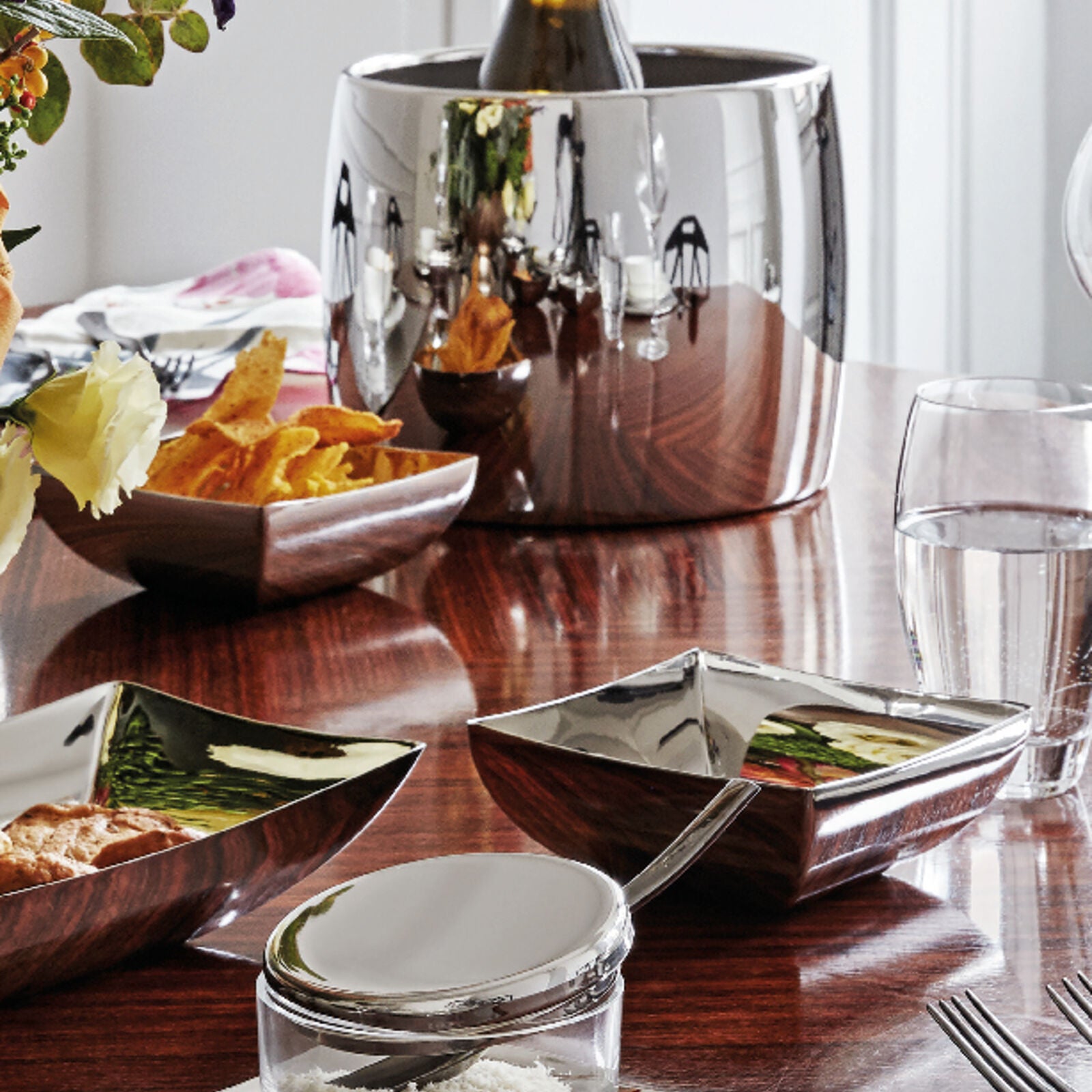 Inspirações e influências do antigo Oriente encontram um design refinado e funcional. A Linea Q é uma das coleções icónicas da Sambonet, marcando o aparecimento de novas geometrias em objetos para a casa e para a mesa.