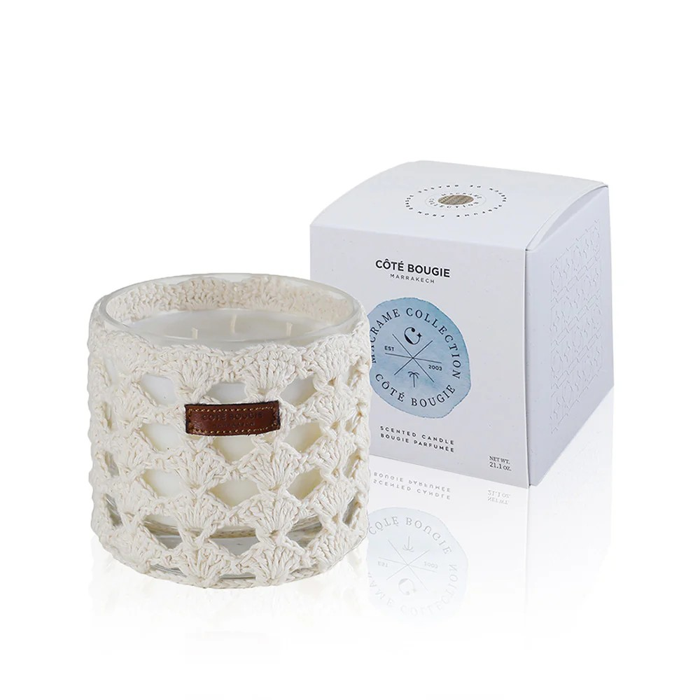 A Côté Bougie combina com mestria as técnicas artesanais tradicionais marroquinas com um design moderno. As velas, cuidadosamente elaboradas à mão, são feitas com cera 100% vegetal.