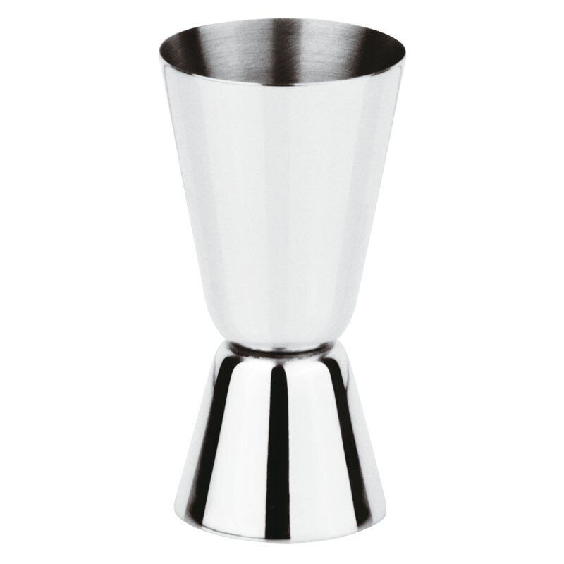 O jigger Paderno, em forma de cone duplo, é essencial para a preparação de coquetéis balanceados. É graduado do lado de fora para dosar com precisão as "partes" dos ingredientes alcoólicos.
