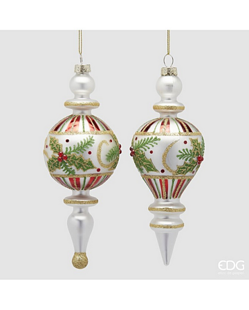 Pendente bola e fuso de vidro verde e dourado para árvore de natal.