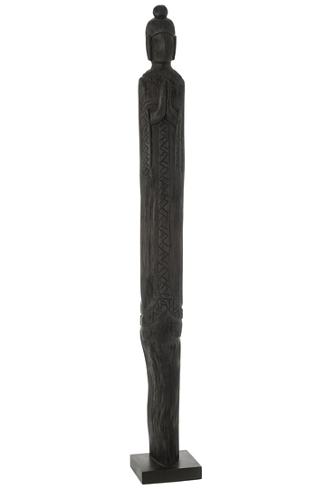 Estátua de Buda esculpida à mão feita de manga preta. Acabamento elegante tornam o objeto decorativo ideal para uma prateleira, escrivaninha ou canto de meditação. Cada peça é única, revelando os tons naturais da madeira e o artesanato tradicional balines.
