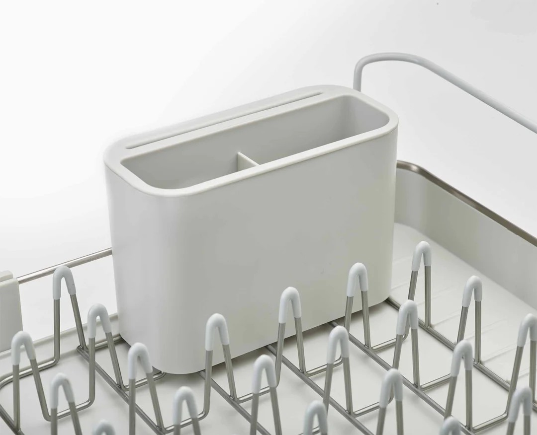 Extend™ foi criado para tornar a tarefa de lavar a loiça muito mais fácil. O escorredor de loiça expansível duplica de tamanho para acomodar mais artigos. Além disso, possui um bocal de drenagem móvel, um compartimento específico para talheres e ranhuras elevadas que impedem a acumulação de água sob copos e taças. Expansível para acomodar mais artigos quando necessário Bocal de drenagem com três posições diferentes Ranhuras elevadas que impedem a acumulação de água sob copos e taças Pinos de drenagem que não riscam e calha para tábua de corte Escorredor de talheres móvel com espaço para faca Acabamento em aço inoxidável com revestimento resistente a impressões digitais