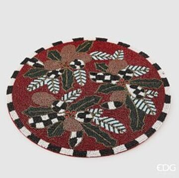 Individual redondo azevinho feito com missangas.