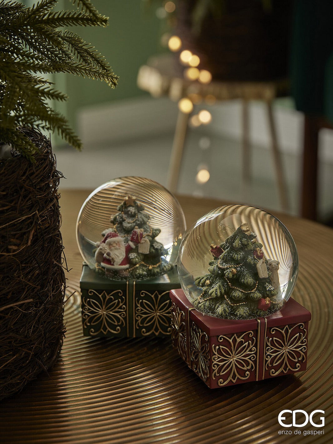Globos de neve sortidos com pai natal e cordeiro.