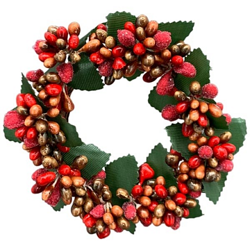 Coroa de folhas verdes com bagas vermelhas para vela.